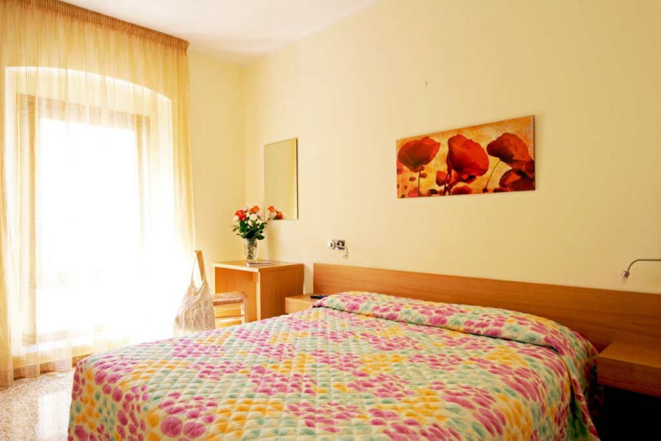 Camera doppia con un letto matrimoniale, letto matrimoniale separabile, tv, bagno, aria condizionata e vista sulla piazzetta Gafforini, una delle più caratteristiche, in pieno centro storico a Lazise.