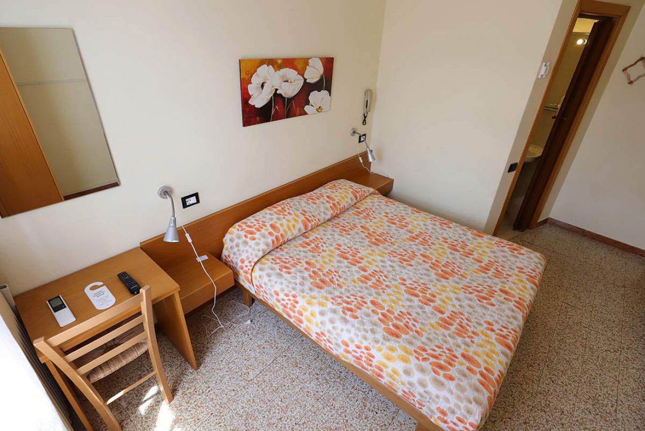 Camera doppia con un letto matrimoniale; tv, bagno, aria condizionata e vista sulla piazzetta Gafforini, una delle più caratteristiche, in pieno centro storico a Lazise.